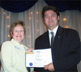 Pictured: Anthony Rinaudo of Hills Estate Agents, being presented his Real estate certificate with Distinction by Diane Murray- Acting Institute Director of TAFE NSW South Western Sydney Institute, on Tuesday evening 17th May, 2005.
